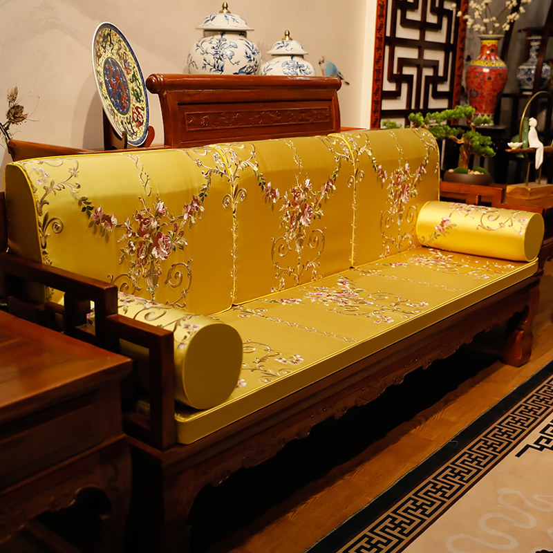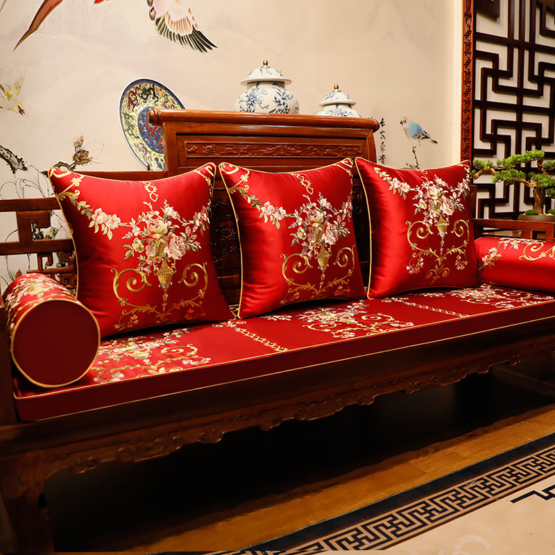 Red Wood Furniture Cushion Vintage Chinese Solid Wood Sofa Cushion With Backrest of Bed Cushion Five Pieces Of Chair Cushion