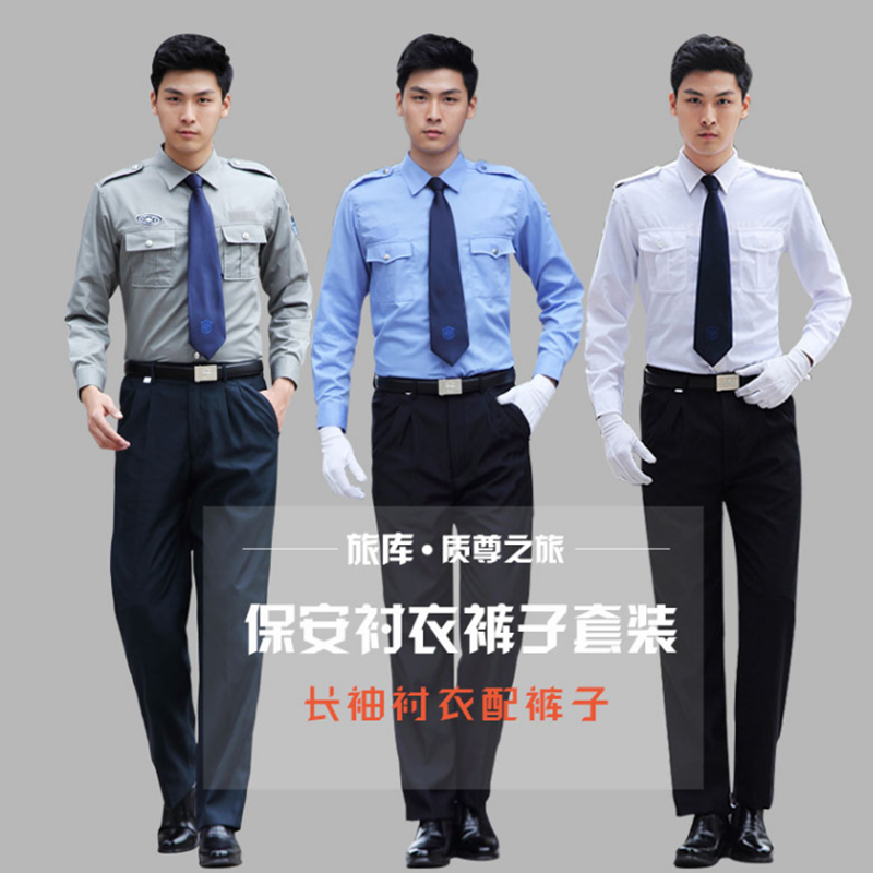 Light gray long-sleeved shirt Light blue long-sleeved shirt White long-sleeved shirt Blue black summer pants Dark green summer pants Any long-sleeved shirt Summer pants