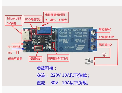 Wide voltage 5V-30V trigger time-lapse relay module timer module time-lapse guide pass delay switch