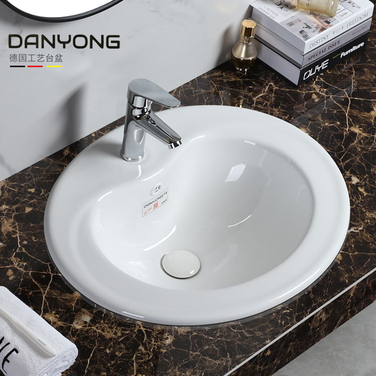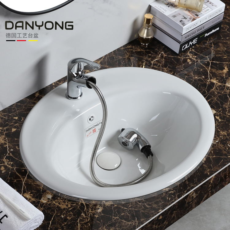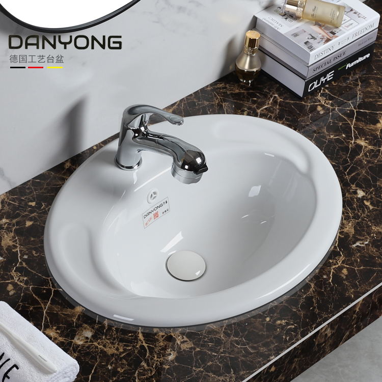 Taichung Basin Semi-Recessed Terrace Washbasin Single Sink Hotel Engineering Oval Makeup Room Washbasin Ceramic