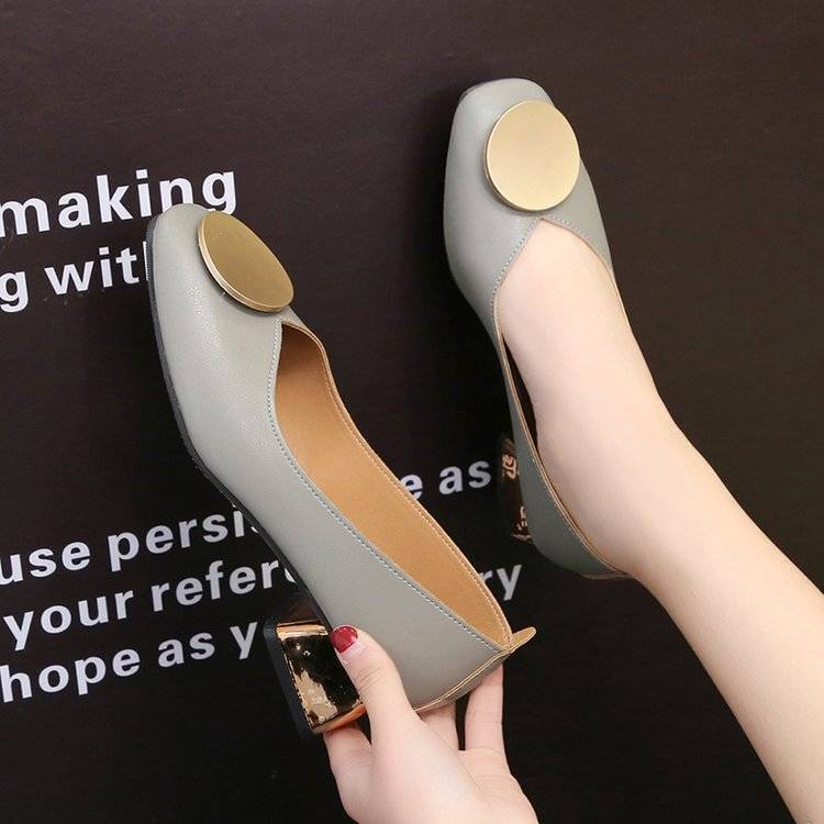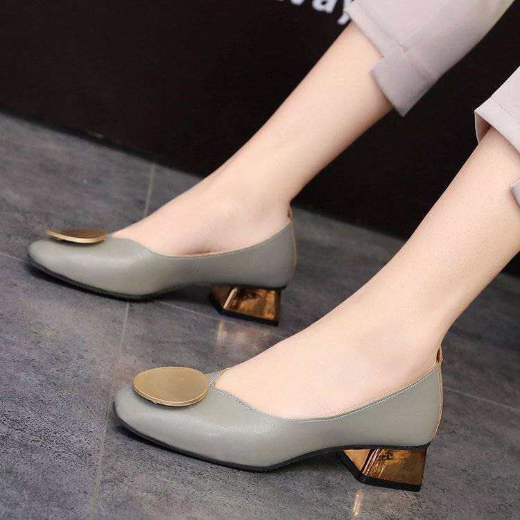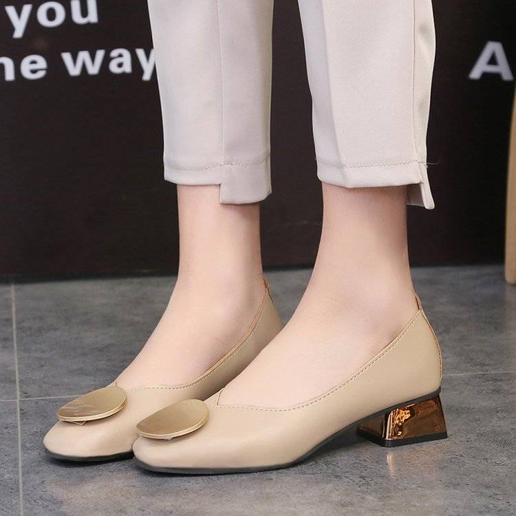 Square head thick heel single shoes Joker student casual small leather shoes fashion mid-to-milk shoes plus size women's shoes 41 yards 42