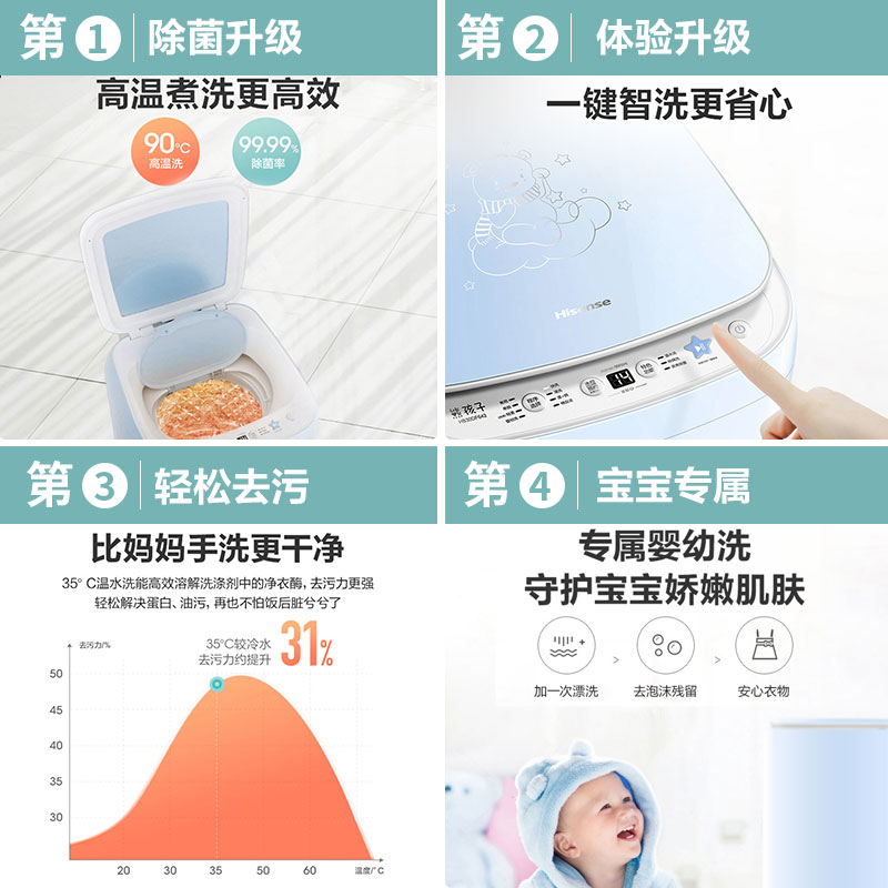 Hisense baby washing machine automatic 3 kg mother baby child small mini wave wheel washing underwear HB30DF642