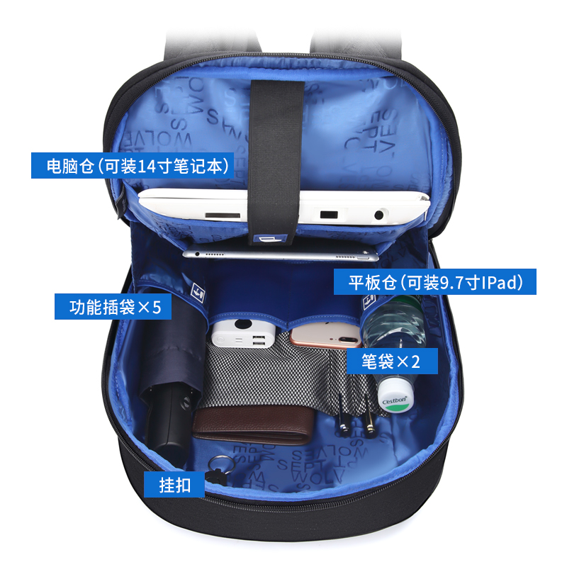 Seven wolves men's double shoulder bag Bag Boys Computer Bag Travel travel for men's business trips for work The Shoulder Bag Trend