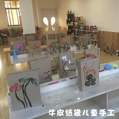 Kindergarten handmade painting Graffiti Kraft paper bag creative art painting tote bag Environmental decoration diy