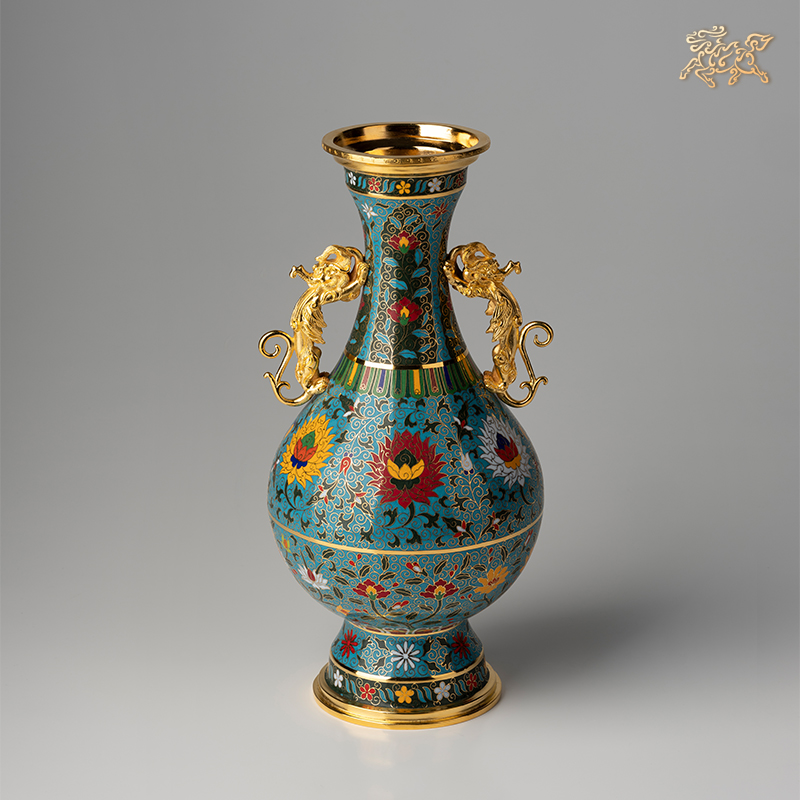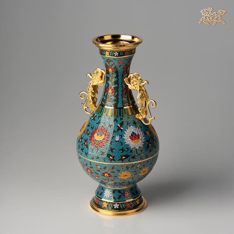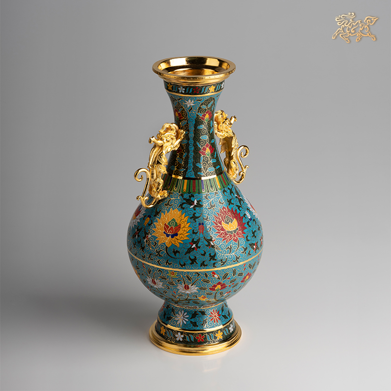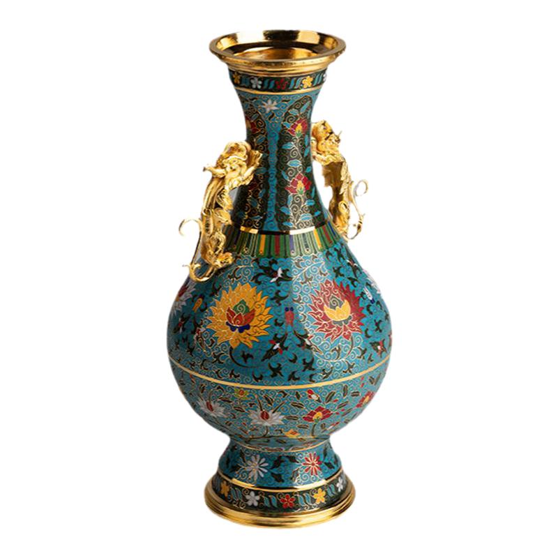 Copper Master Full Copper Pendulum Piece < Jingtai Blue Dragon Ear Bottle > Home Ornament Bronze Craft Gift Pendulum Red Copper Living Room Handmade