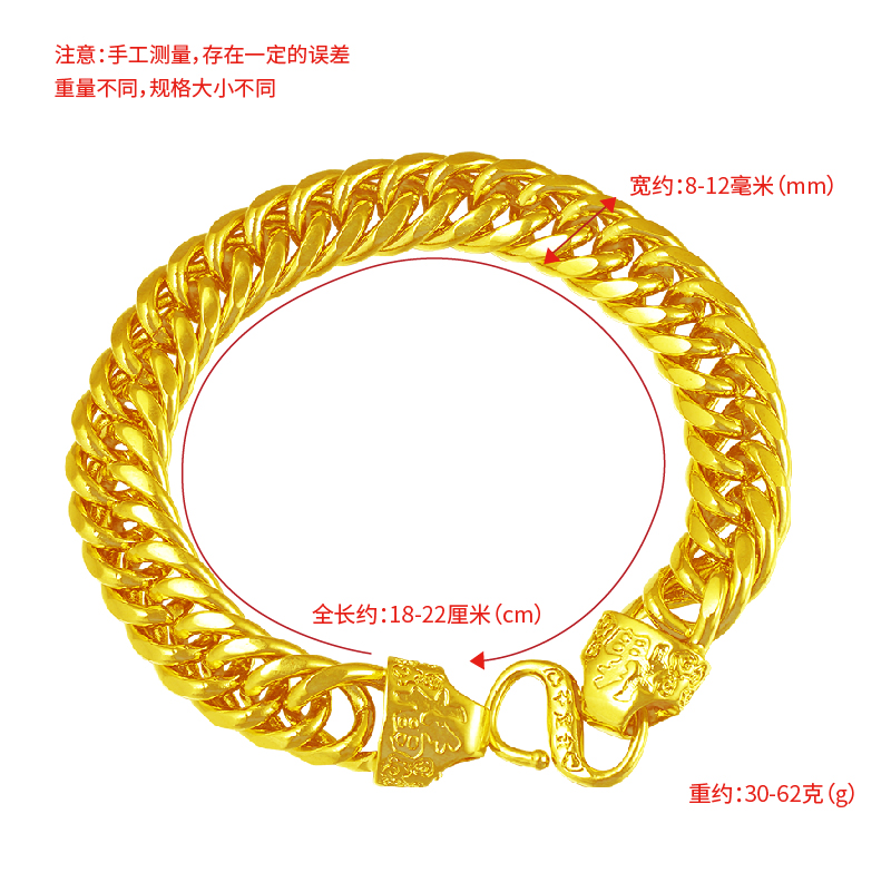 Gold Bracelet 9999 Full Gold Gold Jewelry Boss Chain Tank Chain Real Gold Jewelry Men and Women Thick