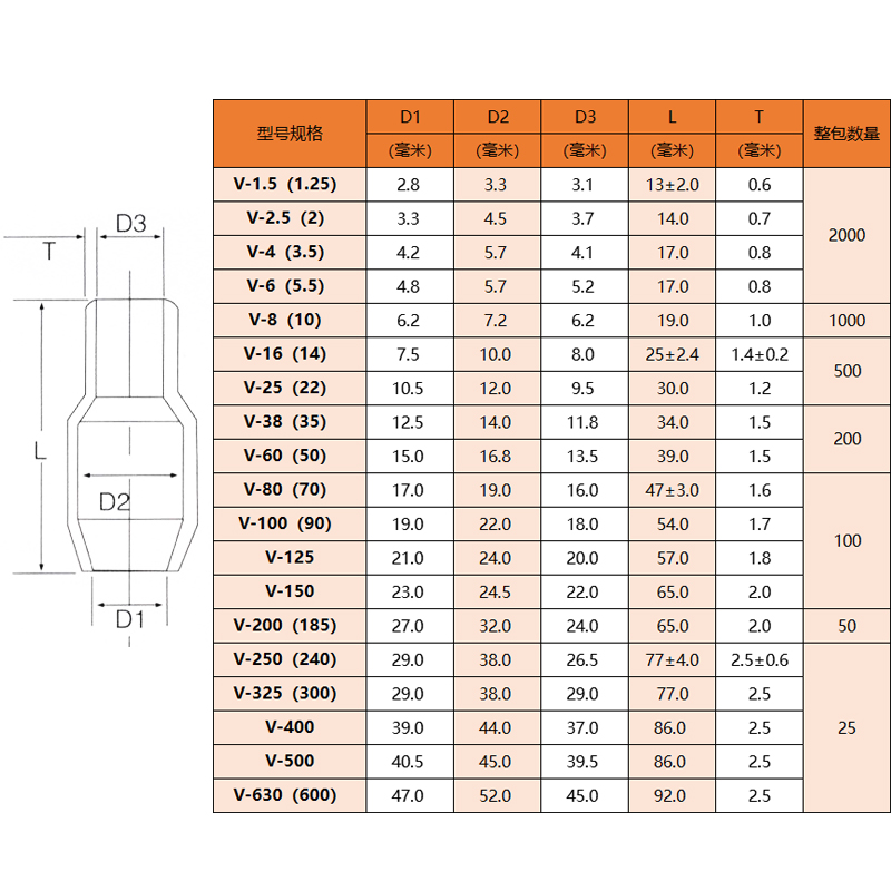 Insulation soft sleeve cable copper wiring terminal wire colour sleeve V10 16 25 squared cold pressed wiring bare terminal jacket