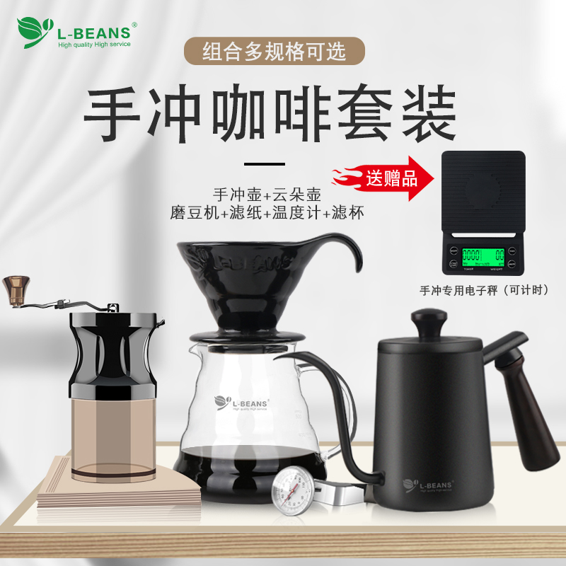 L-BEANS long mouth hand punch coffee pot combination set Stainless steel fine mouth pot warm grinding bean machine cup filter paper