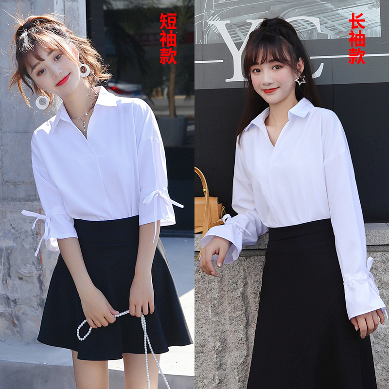Free Ironing White Shirt Woman Design Sensation Small Crowdslim Sweet Snowspinning Career Working Middle Sleeve 70% Sleeve Shirt