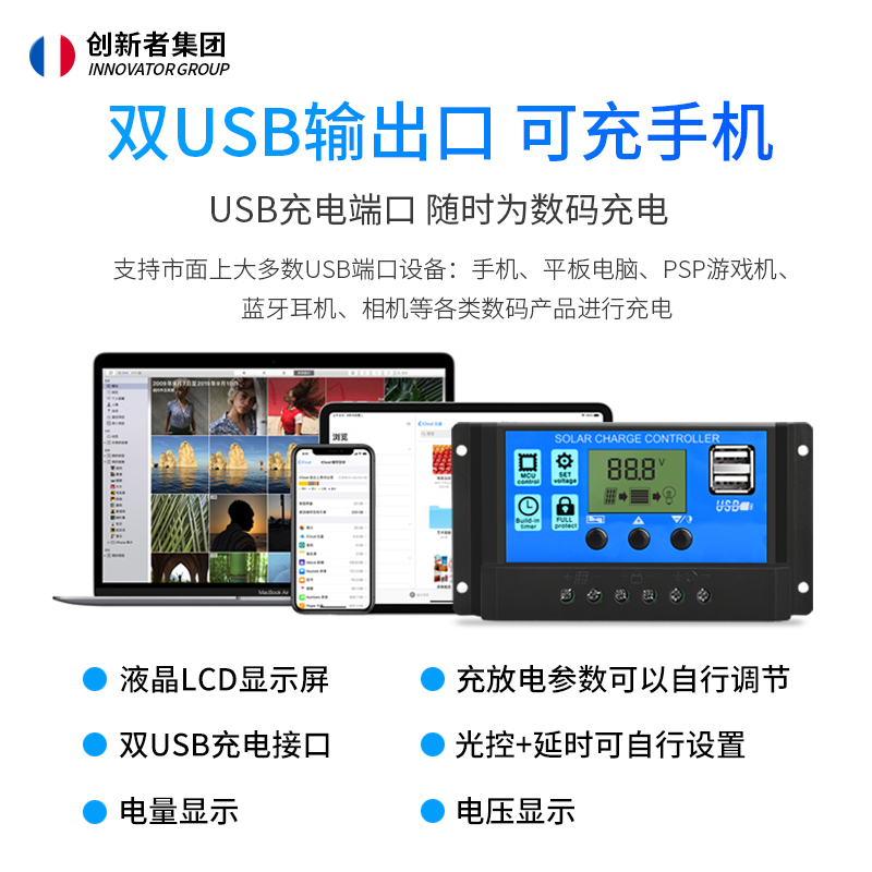 Solar controller fully automatic lead-acid storage battery charging 12v24v street lamp Photovoltaic power generation lithium battery universal