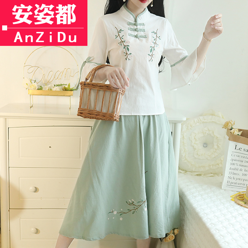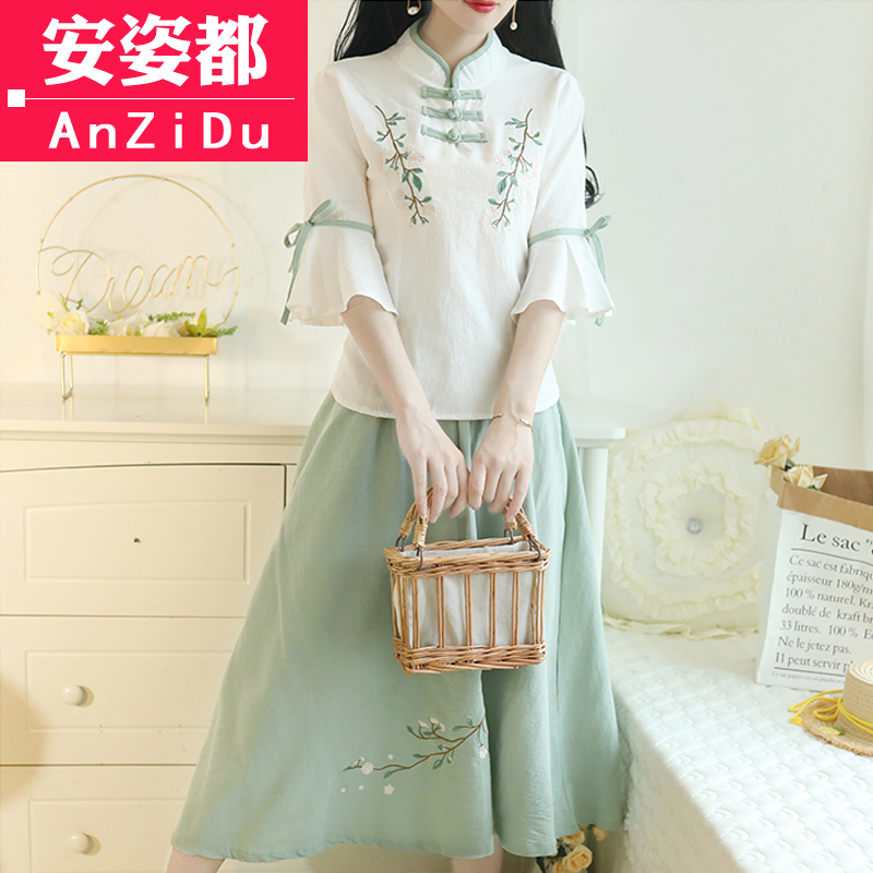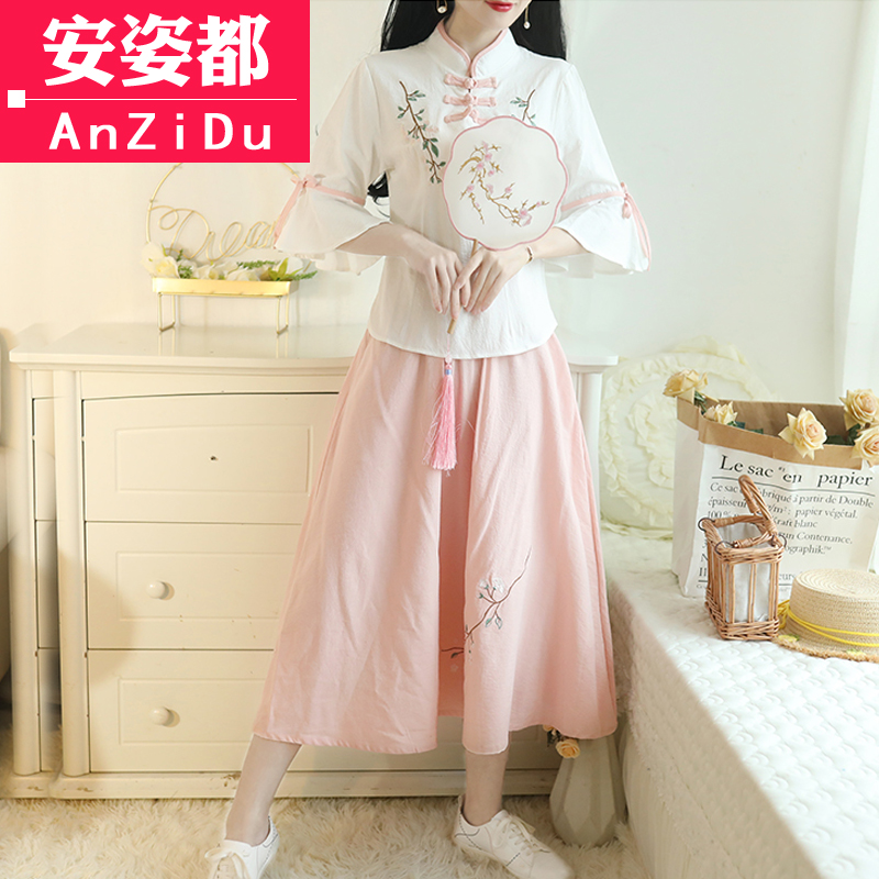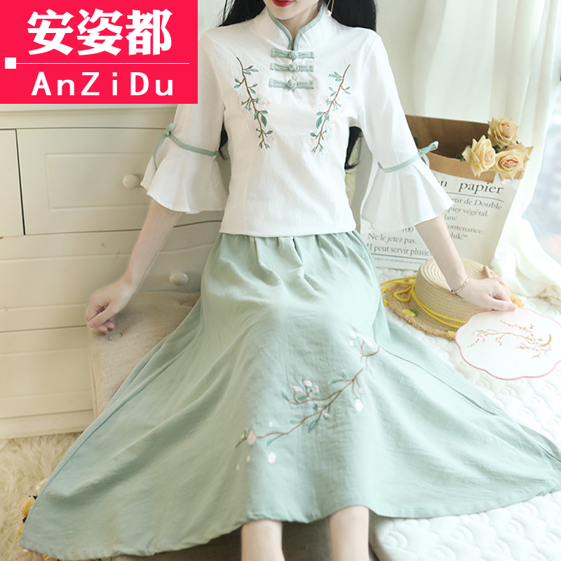 The Republic of China Feminists of the Republic of China with a Tang Dress Suit and a summer dress Two style retro style cotton linen clothes Chinese Wind Improvement Qipao Blouse