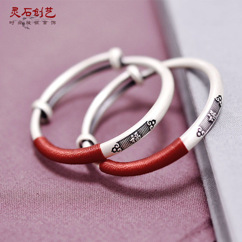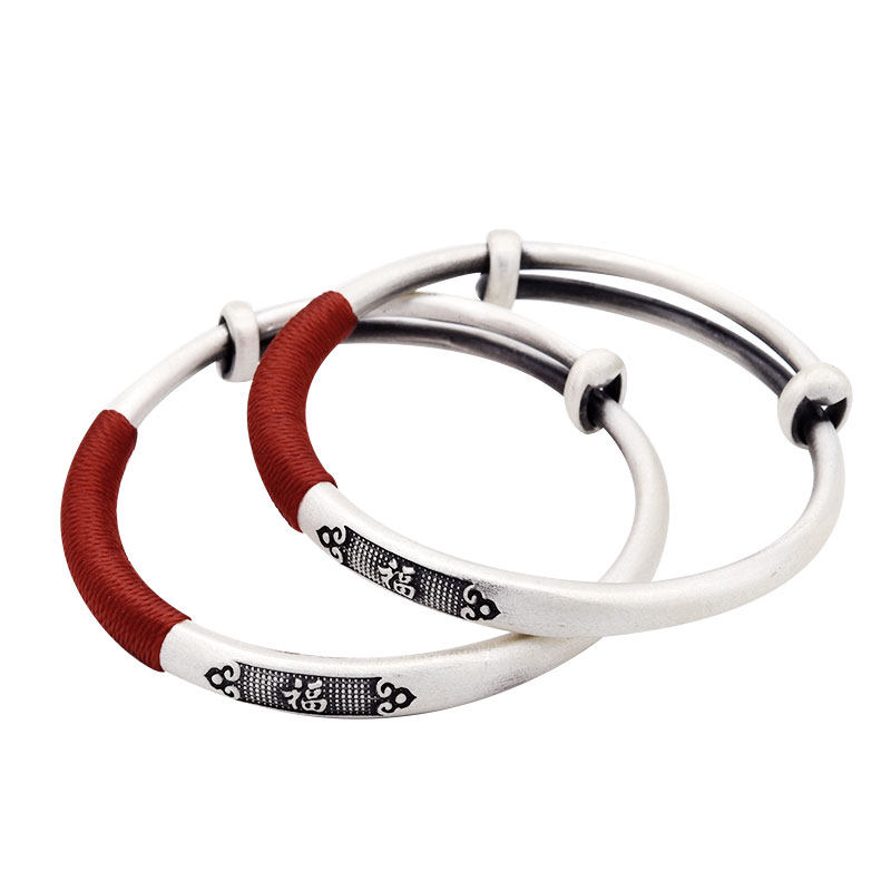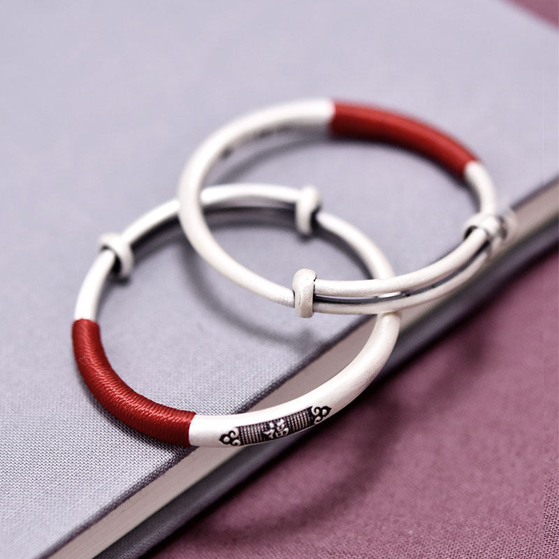 999 Sterling Silver Baby Bracelet Women's Foot Silver Handmade Silver Retro National Wind Red Rope Men's and Women's Baby Full Moon Bracelet