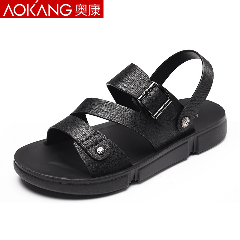 Aokang men's shoes 2019 summer new sandals men's Korean version trendy sandals soft bottom beach shoes slippers dual-use