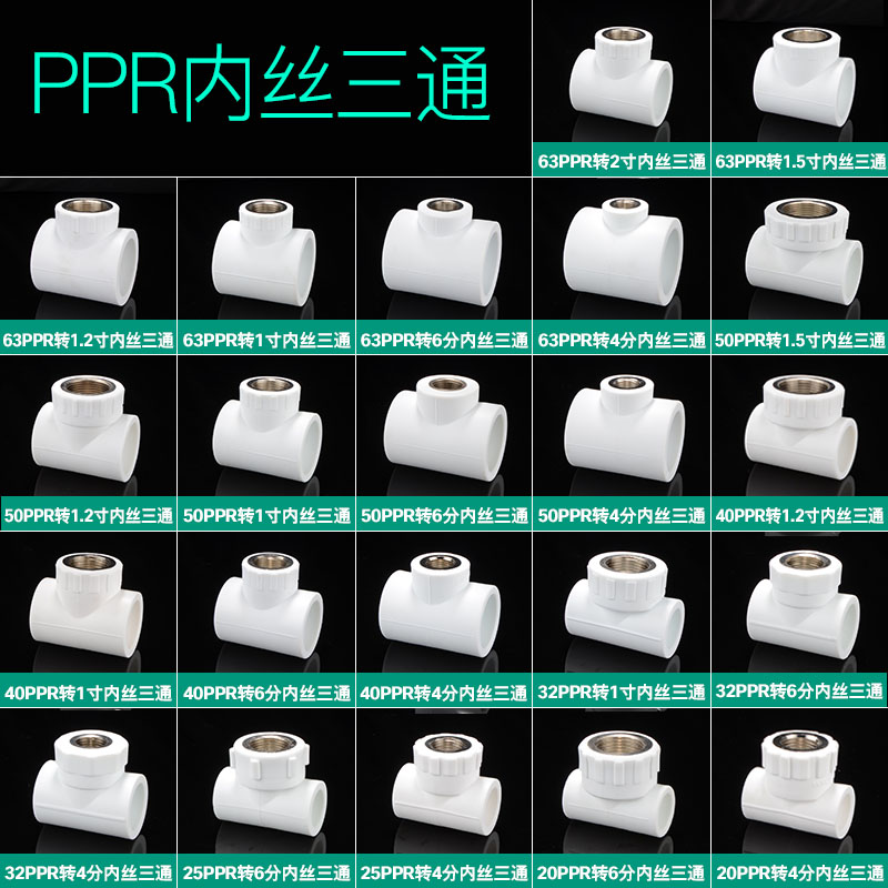 4 points 20PPR inner wire tee 25 Pipe joint 32 Water pipe fittings 40 inner tooth tee 50 Reducer joint 63 Pipe fittings