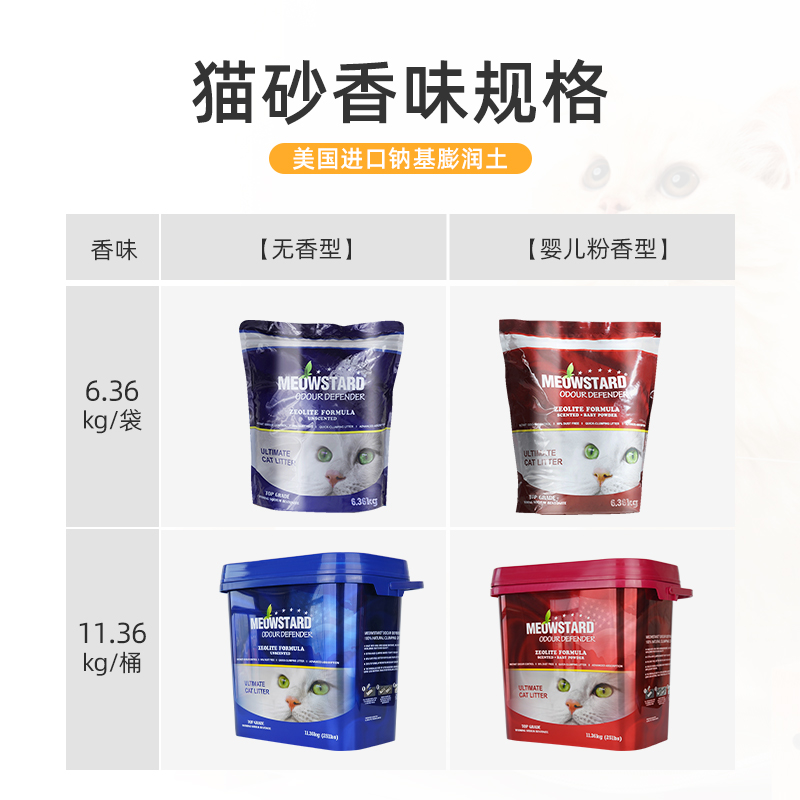 Meowda cat litter imported from the United States bentonite agglomeration low dust deodorant zeolite formula baby powder fragrance type 6 36kg