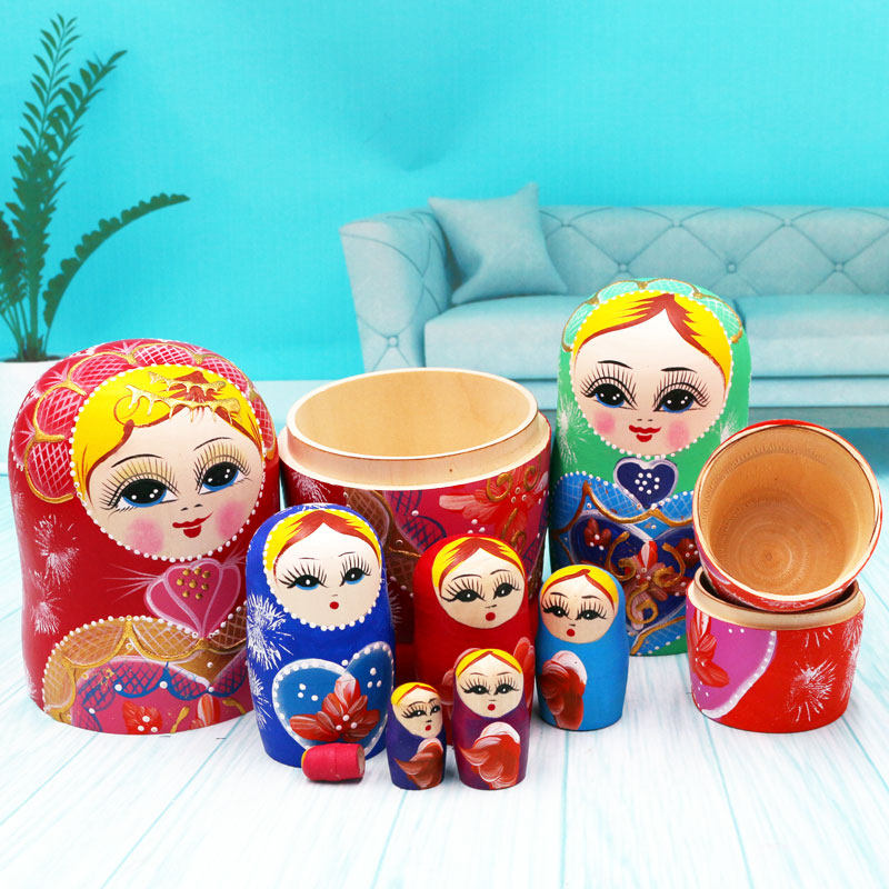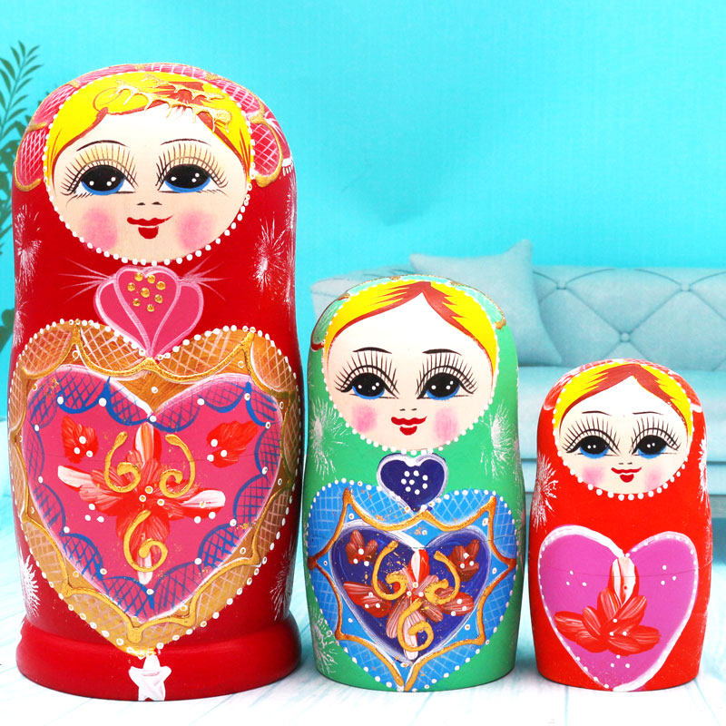 Matryoshka Russian Toy 10 layers peach heart girl cute pure handmade wooden doll Chinoiserie ornaments