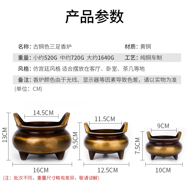 Pure Copper size Home Incense Stove Room dedicated to Buddha Incense Stove Lavender incense stove Line Incense Inserts Xuan Stove Sandalwood Stove