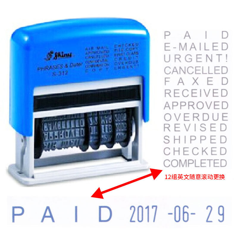 Taiwan Shiny Sony S-312 Back to Ink ten thousand Seals PAID ReceiveED Adjustable in English and Chinese Date Chapter