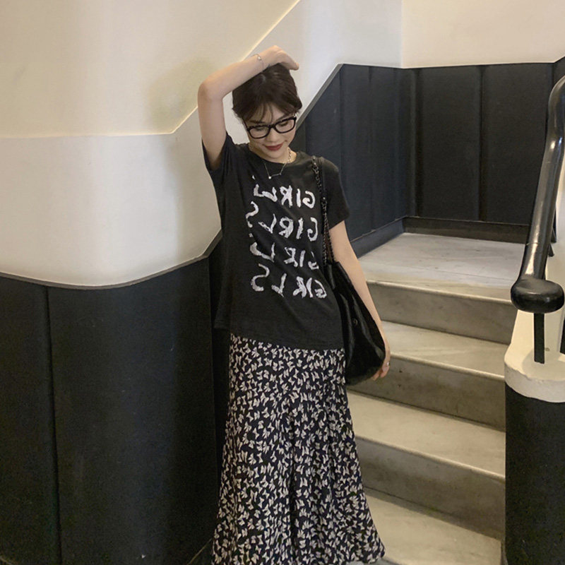 2022 women's dress new minimalist letters white round collar short sleeves T-shirt female summer loose pure cotton half sleeve blouses