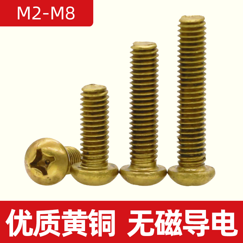 Brass round head screw M2M3M4M5M6M8 Copper cross pan head screw Brass round head screw Copper screw
