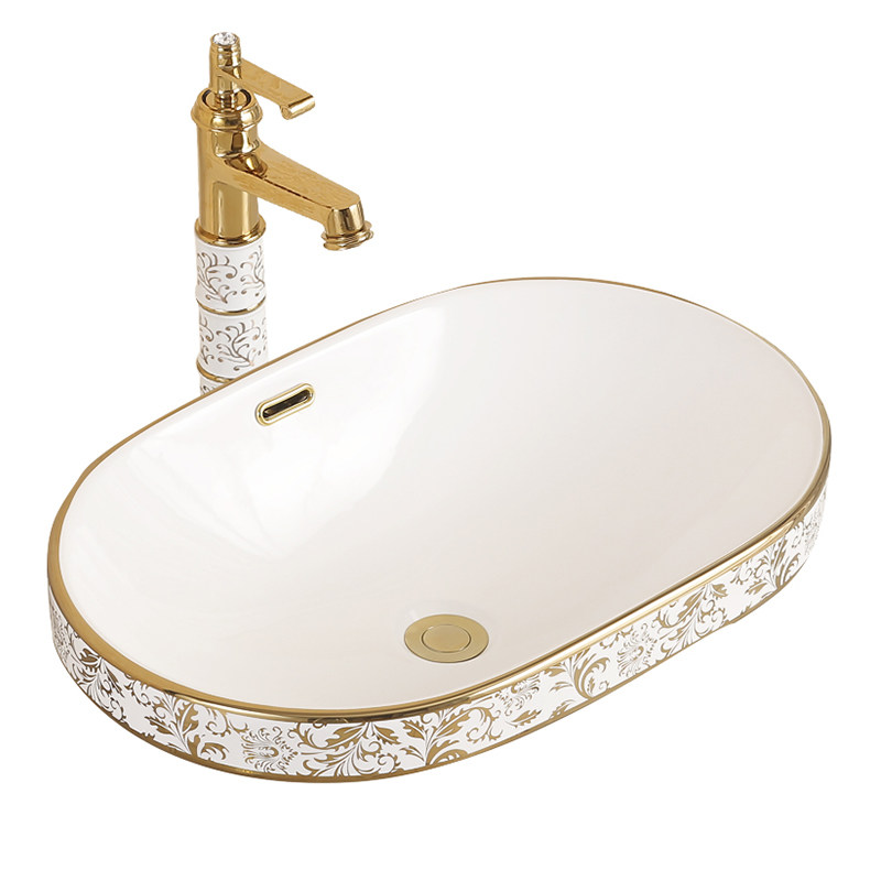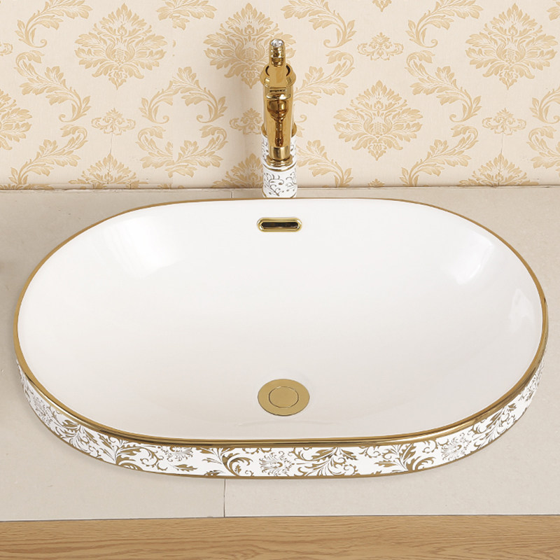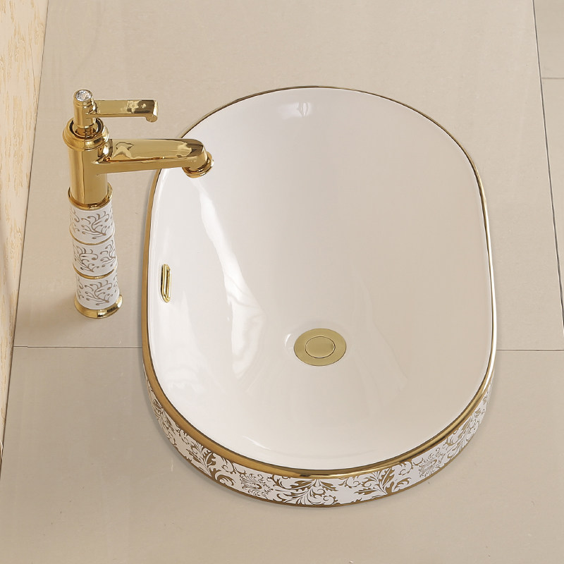 Huimengsha Taichung basin semi-embedded oval balcony washbasin ceramic washbasin household countertop basin European style