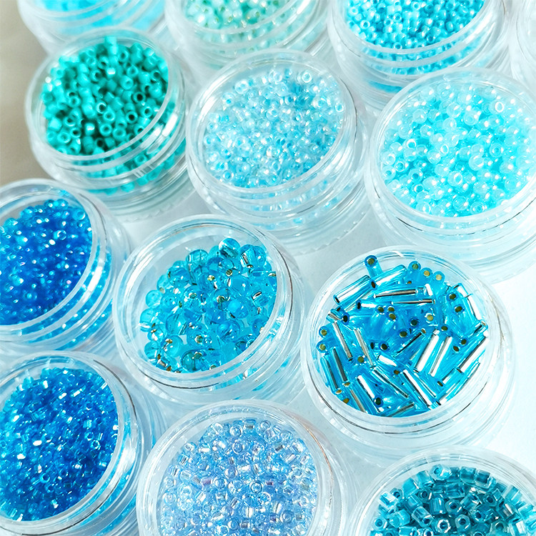 1#Blue frosted rice beads 2mm2#Blue matte silver rice beads 2mm3#Blue solid color rice beads 1 5mm4#Light blue cat's eye rice beads 2mm5#Turquoise blue solid color antique beads 1