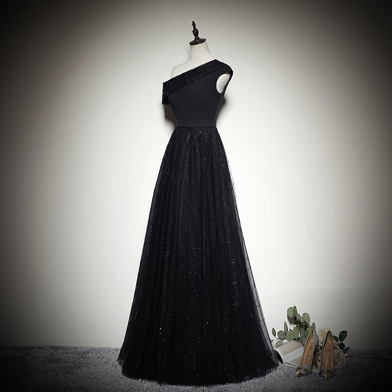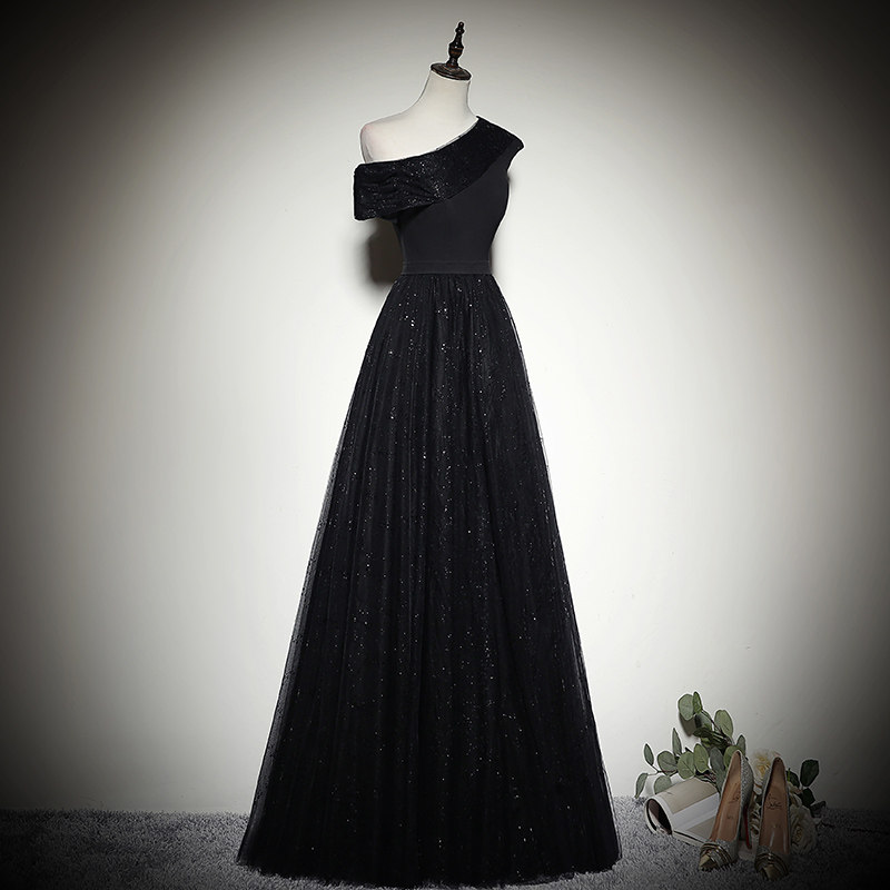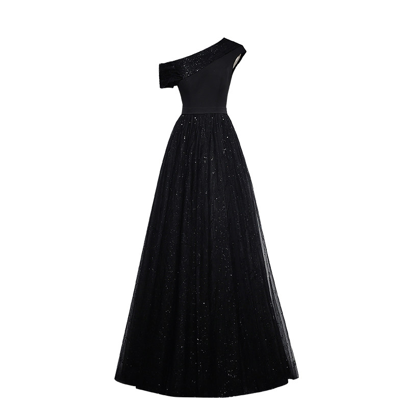 Gown Girl Party banquet 2022 single shoulder sequin new black evening gown Noble Celebrities Host Gown