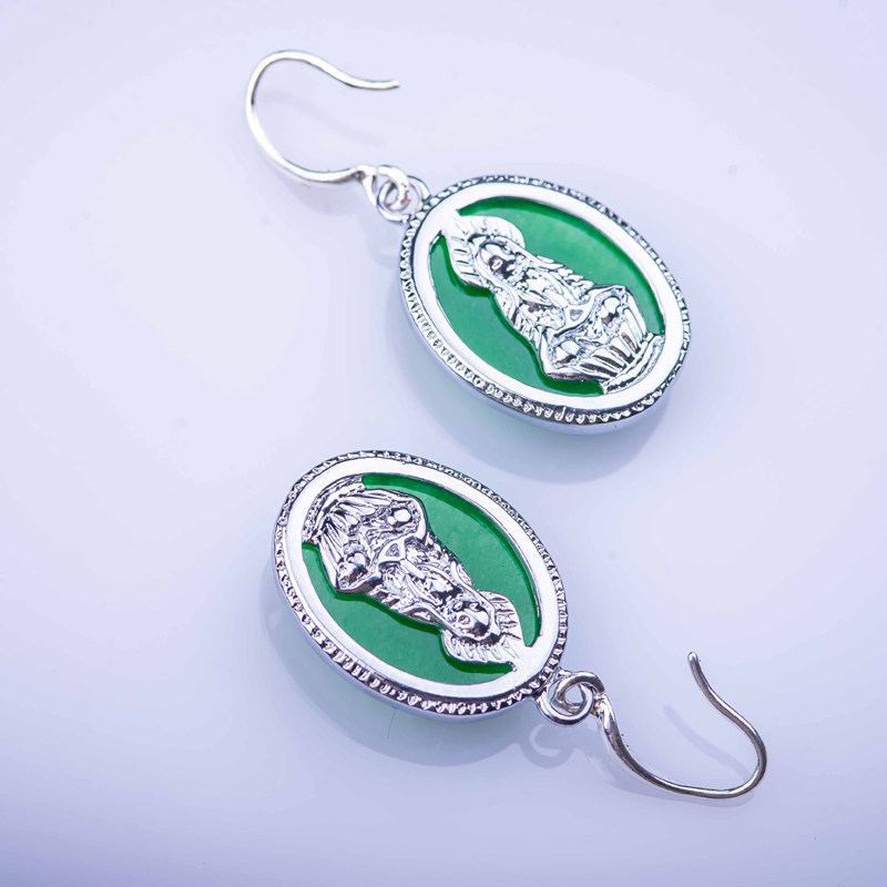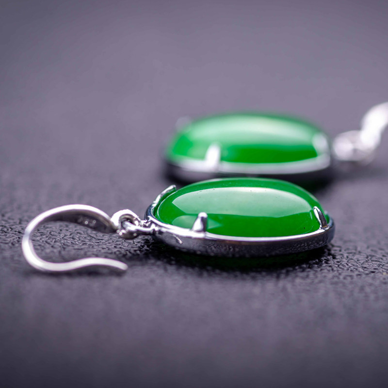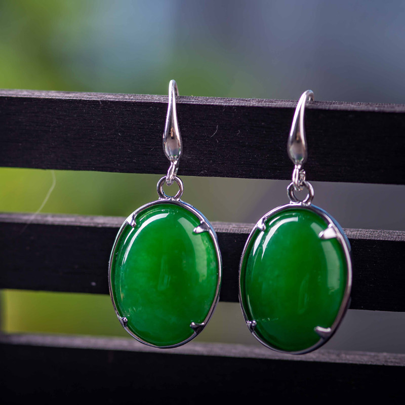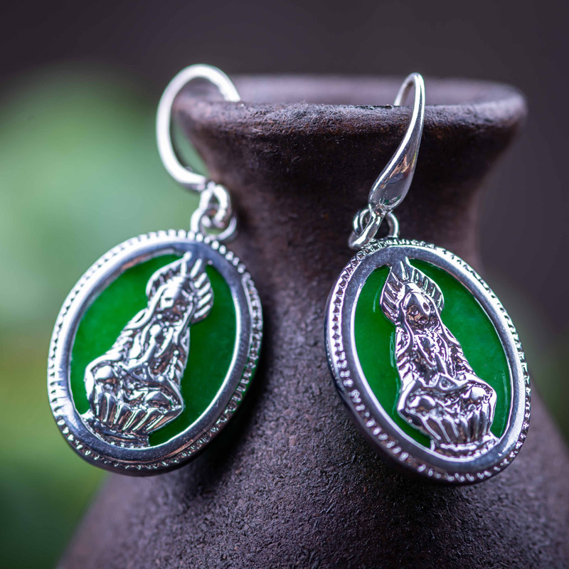 Xi Zhan Xuan New Malay Jade Earrings S925 Silver Adorned Ear Pendant Earthen Mother Green and Honorable Atmosphere