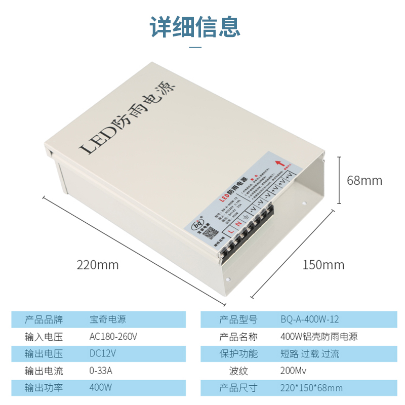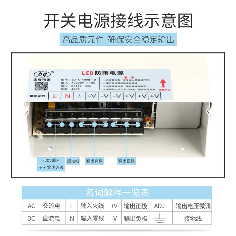 12v33A400W rain-proof outdoor power LED luminous character light strip billboard building general direct current transformer