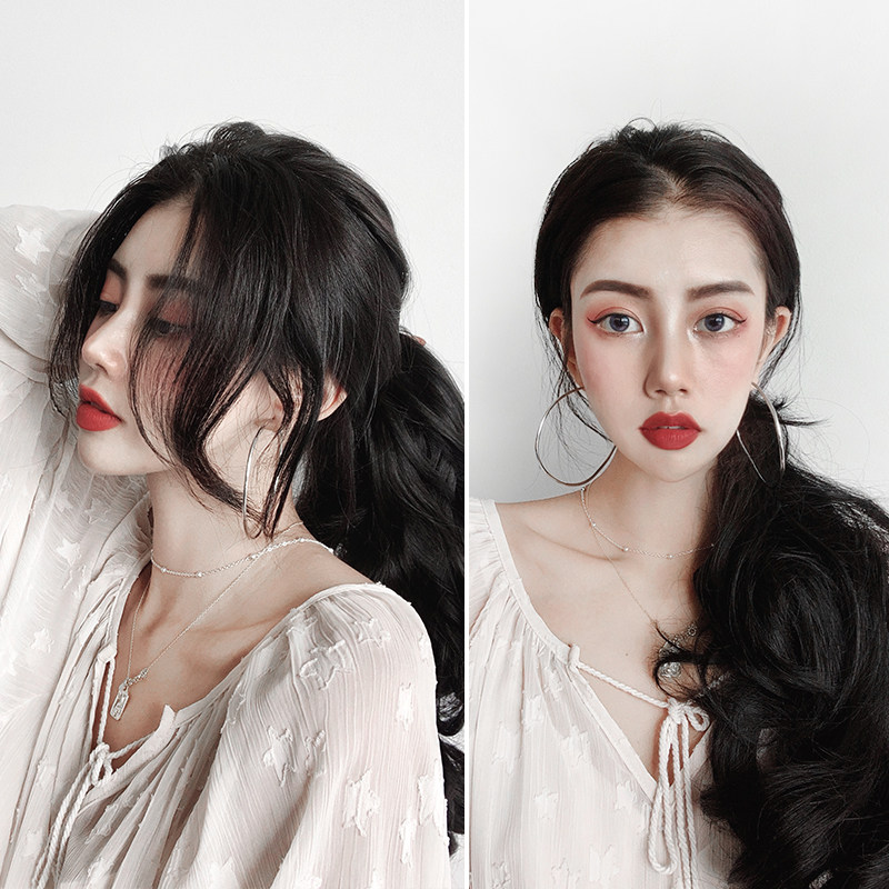 The Liuhai Wig piece is divided into eight characters on two sides of the road without a trace of the sea and the sea netting red and a sea of red real hair.