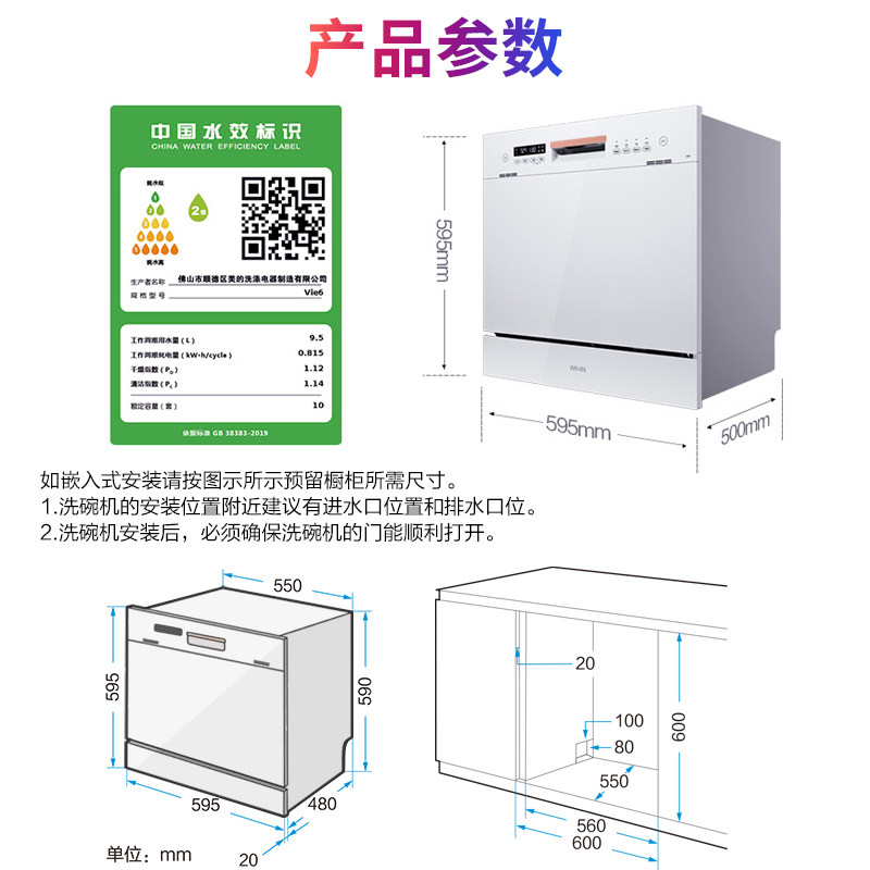 Hualing dishwasher vie6 automatic household small embedded desktop large capacity 10 sets of disinfection and drying integrated