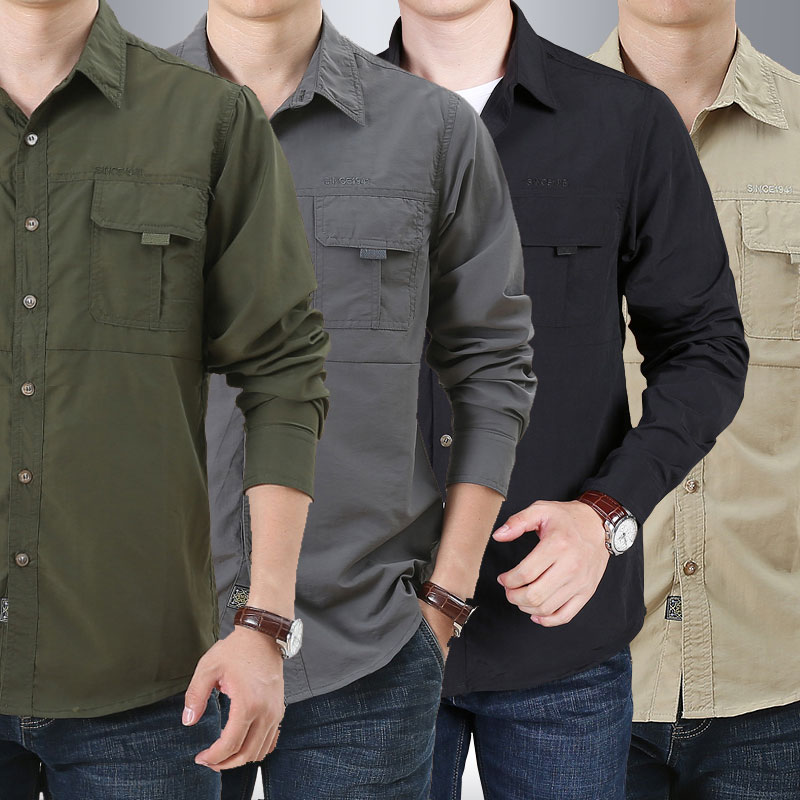 Men's sleeve tactical sky dry shirt autumn sunscreen outdoor mountaineering large size relaxed casual shirt work clothes