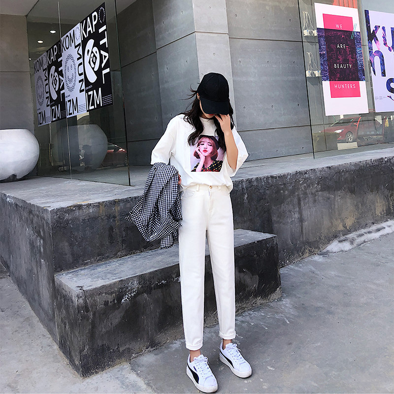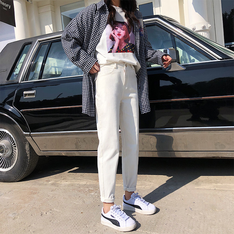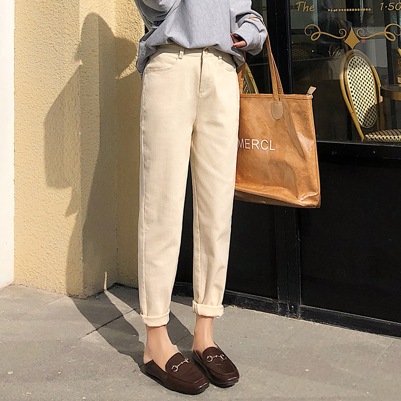 White daddy pants women's 2020 spring new tide high-waisted loose Hyuna Harun Lob slim beige jeans