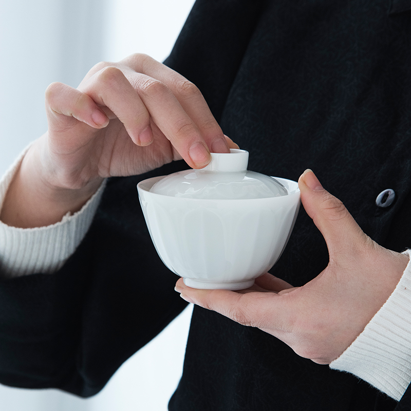 Good Things View Lan Bubble bowls Jingdezhen Ceramics Tea Ware Bubble Tea Bowl Thin Tire Lotus Leaf Cover Bowl Tea Cup Kung Fu Tea Set Group