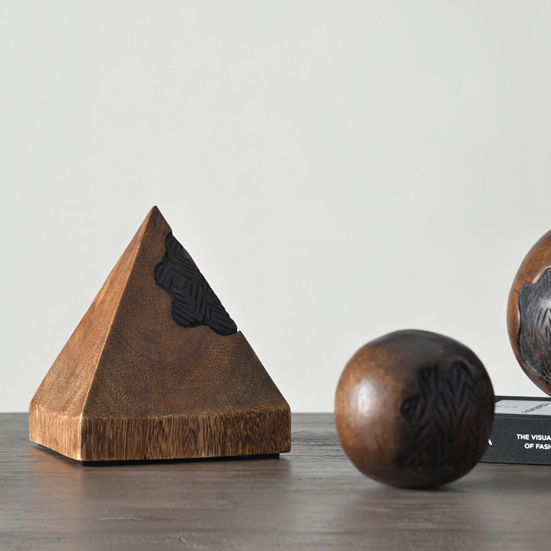 Calle Southeast Asia imports Northern European American Country Creative Handmade Carving Solid Wood Pyramid Round Wood Sculpture