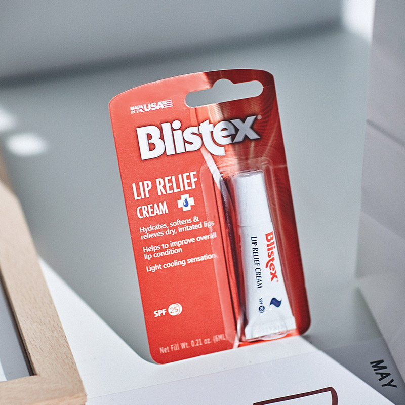 The white tube moisturizing the lip balm.