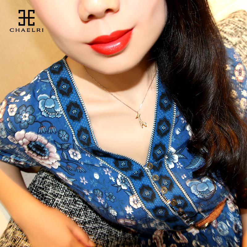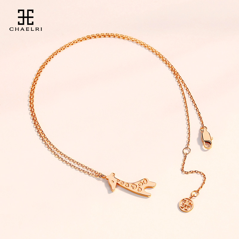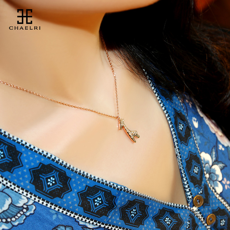 Lammire little deer A deer with your small crowd design titanium steel 18K rose gold color gold necklace female lock bones chain ins