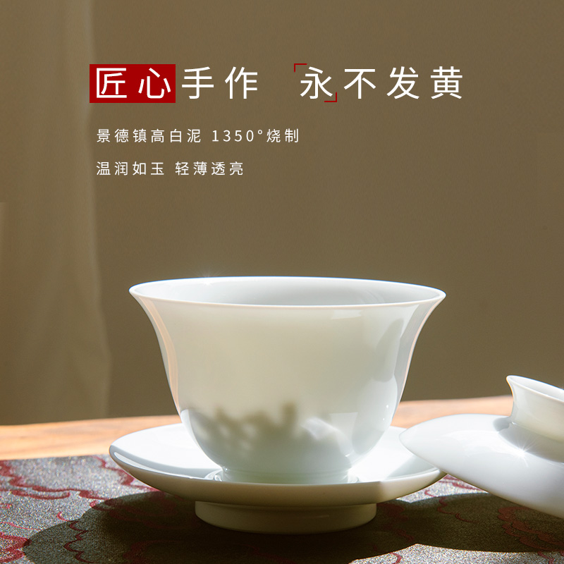 Jingdezhen hand - covered cup white porcelain kung fu tea set three - tall bowl ceramic thin fetal tea bowl