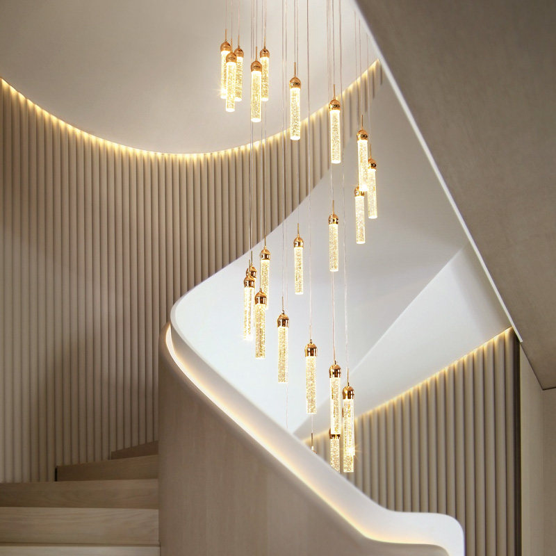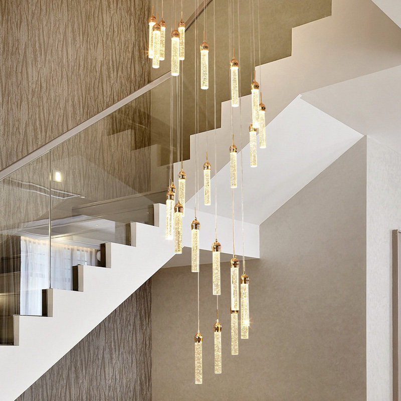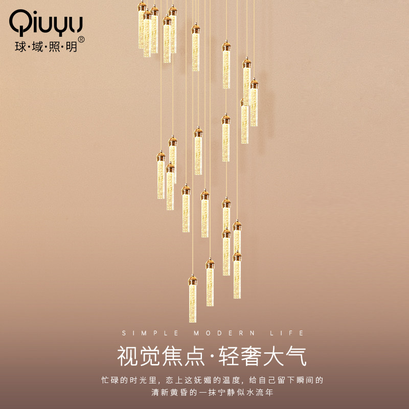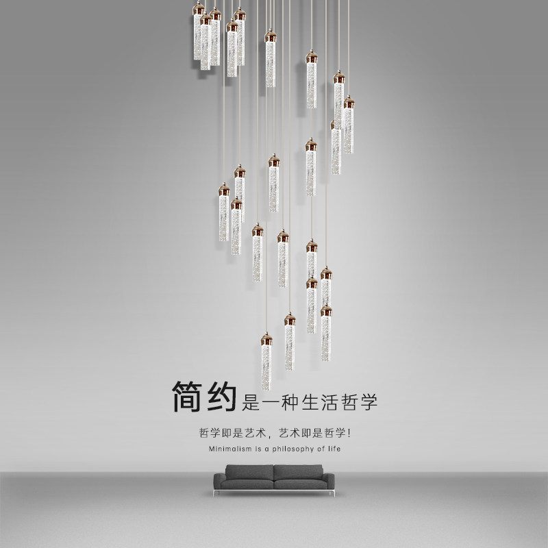 Stair lamp long chandelier duplex floor living room large chandelier modern minimalist villa loft rotating staircase crystal chandelier
