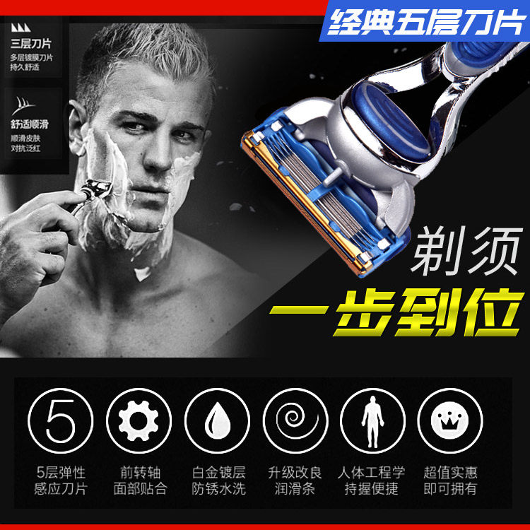 Original Gelia five-layer blade speed hidden front 5 blade wind hidden head razor blade manual shaving head