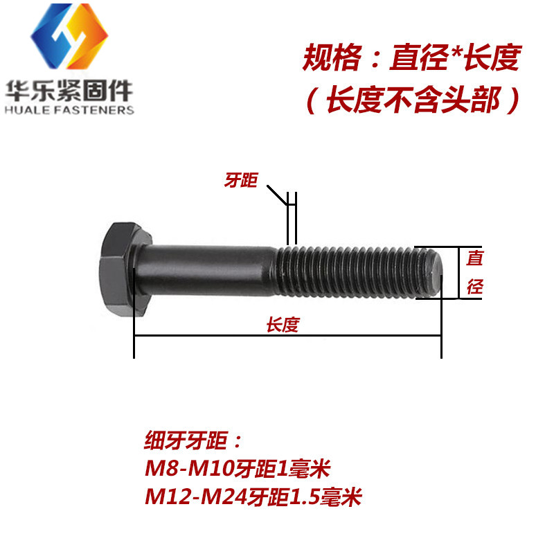 12 Grade 9 high strength fine tooth external hexagon screw Thin Buckle Bolt M10 * 1 0 10*1 25*20-120