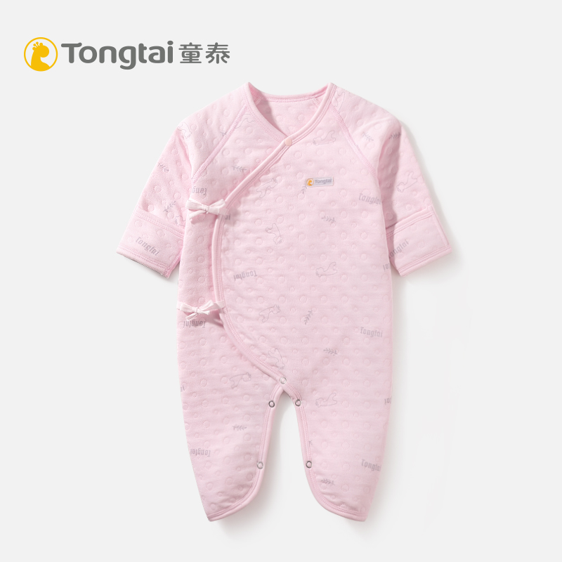 Tongtai newborn butterfly romper baby autumn and winter biased tie thickened warm jumpsuit closed crotch snap romper