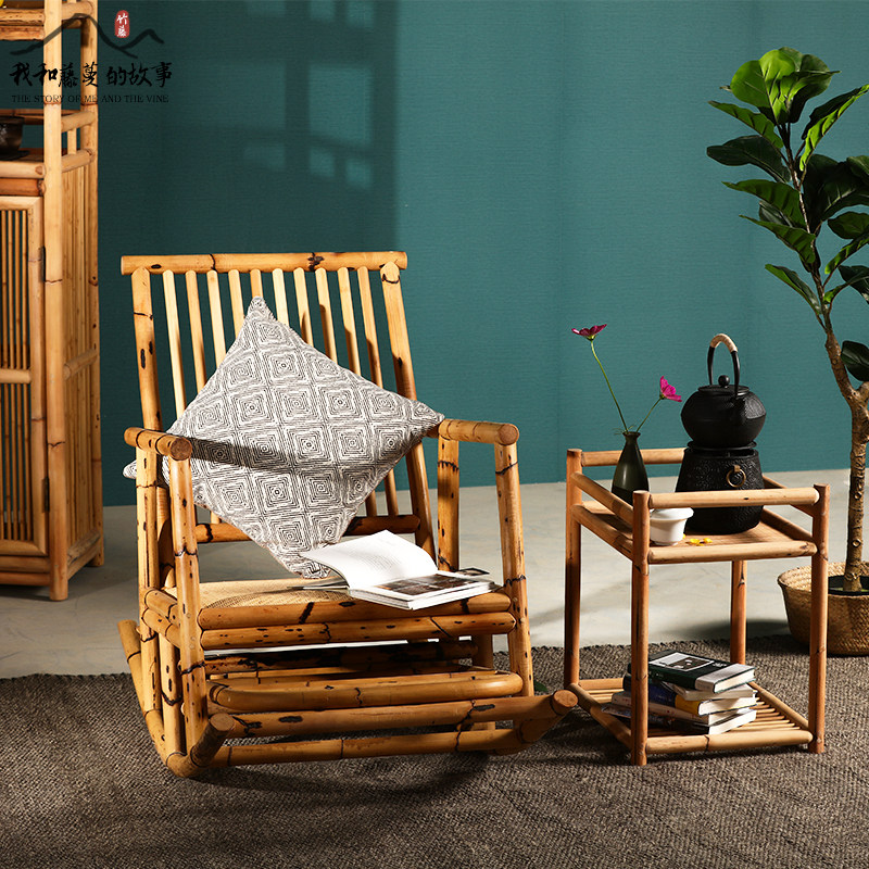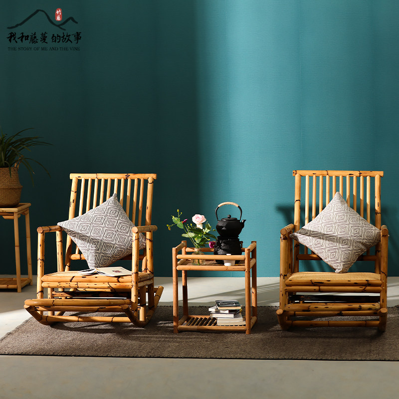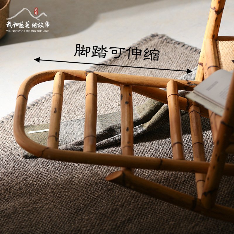Day Style Flowers Spotted bamboo rattan rocking chair Balcony Casual Rocking Chair Folk Sleeping adult Lying Chair Outdoor Single Rocking Chair