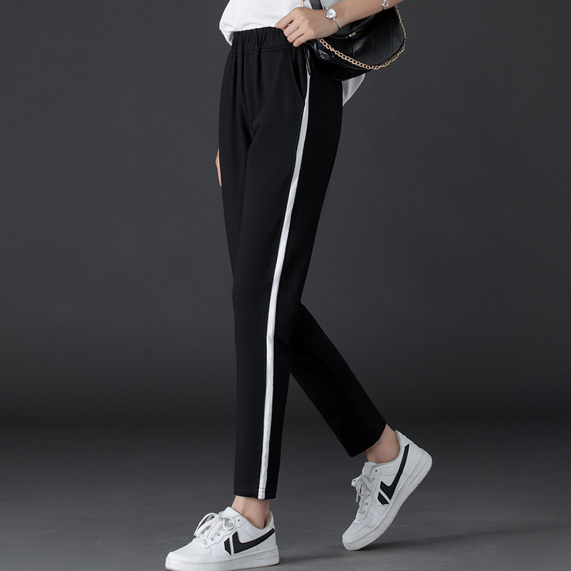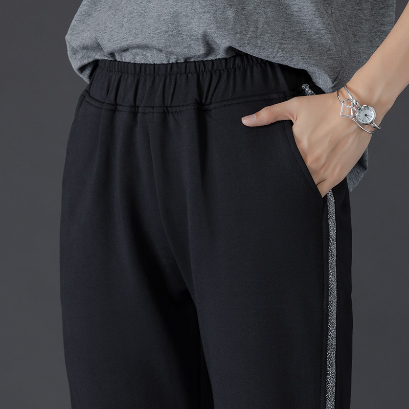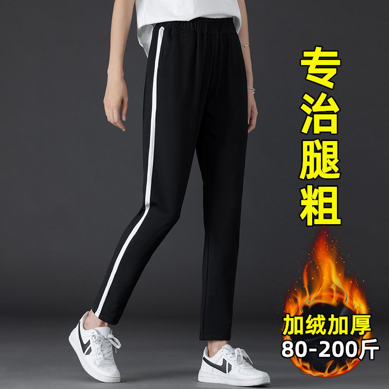 Fat mm plus velvet striped cotton sports pants women's spring and autumn loose large size 200 jins thin casual straight-leg women's pants