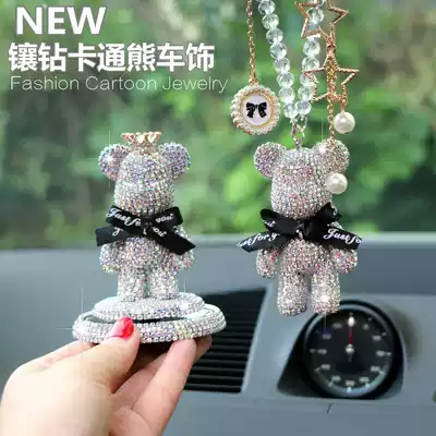 Net Red Diamond cartoon bear car pendant rear mirror hanging decoration creative car interior decoration Crystal car car interior accessories