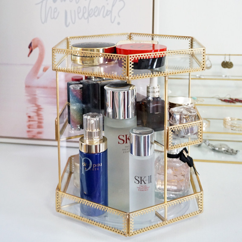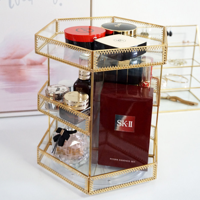 Net red skin care pint holder glass swivel frame Cosmetic Lipstick perfume Desktop Containing Finishing Show Shelf