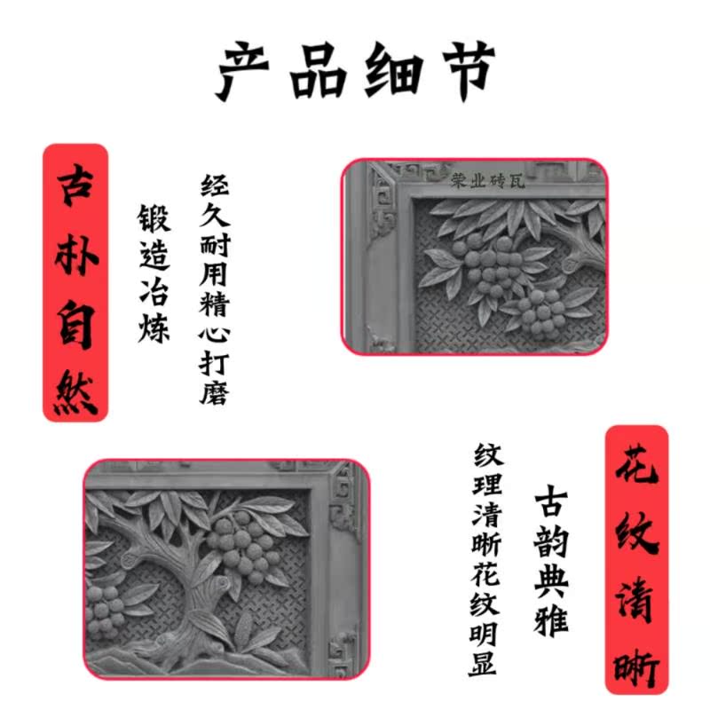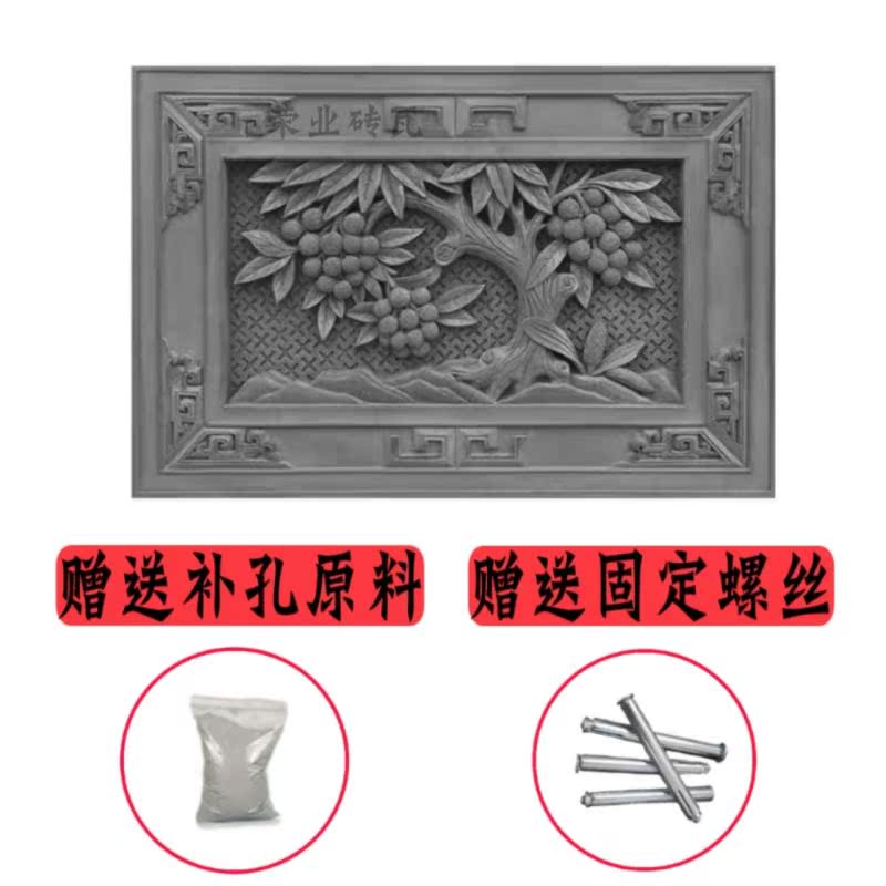 Brick carving Bogu lychee mascot brick carving pendant family Huizhou brick carving square cultural wall relief can be customized pattern