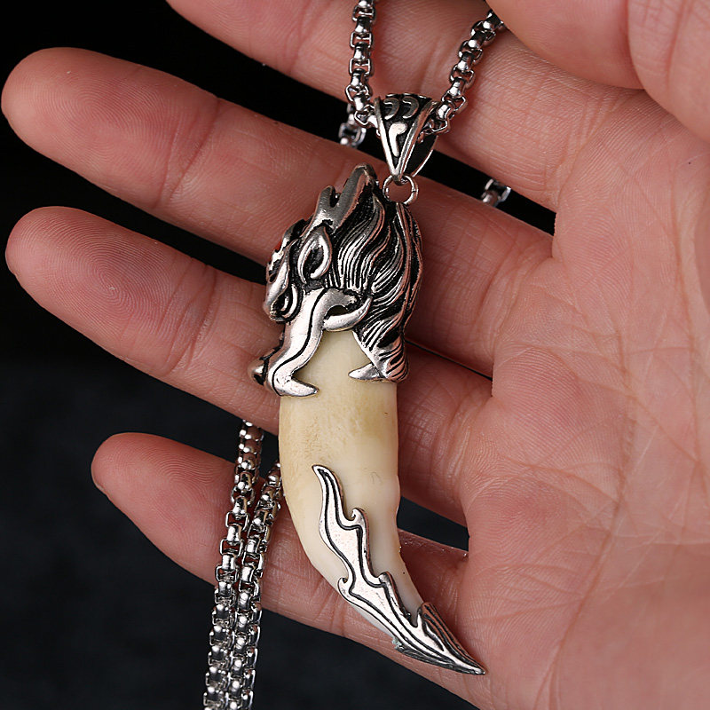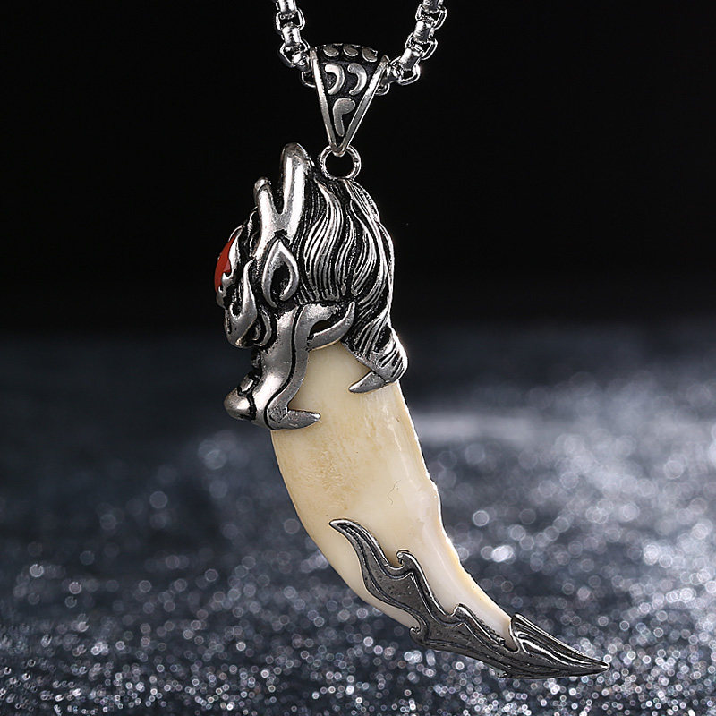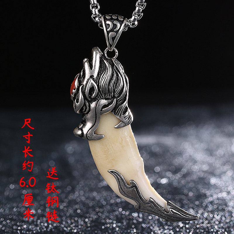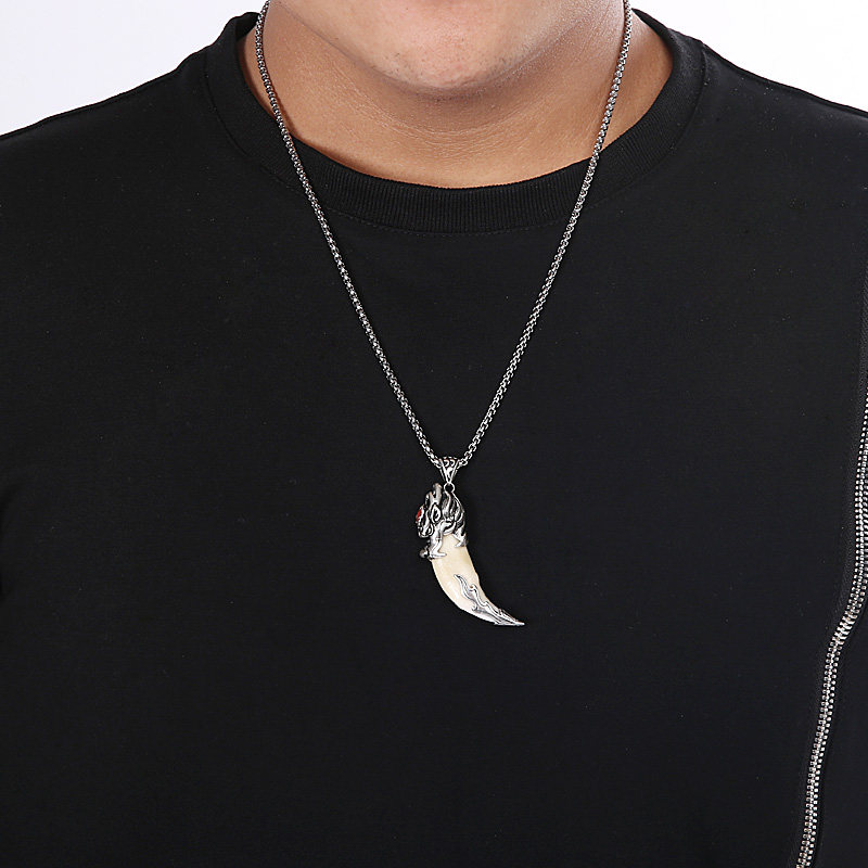Retro pure silver jacket jacket jacket hand-hidden black dog teeth man necklace keybutton