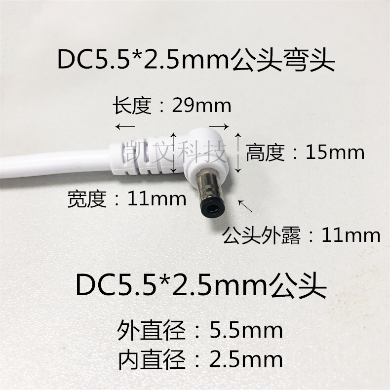 Pure copper 1 square DC5 5*2 5 elbow male to female extension cable 19V projector power supply lengthened white 1 5 meters