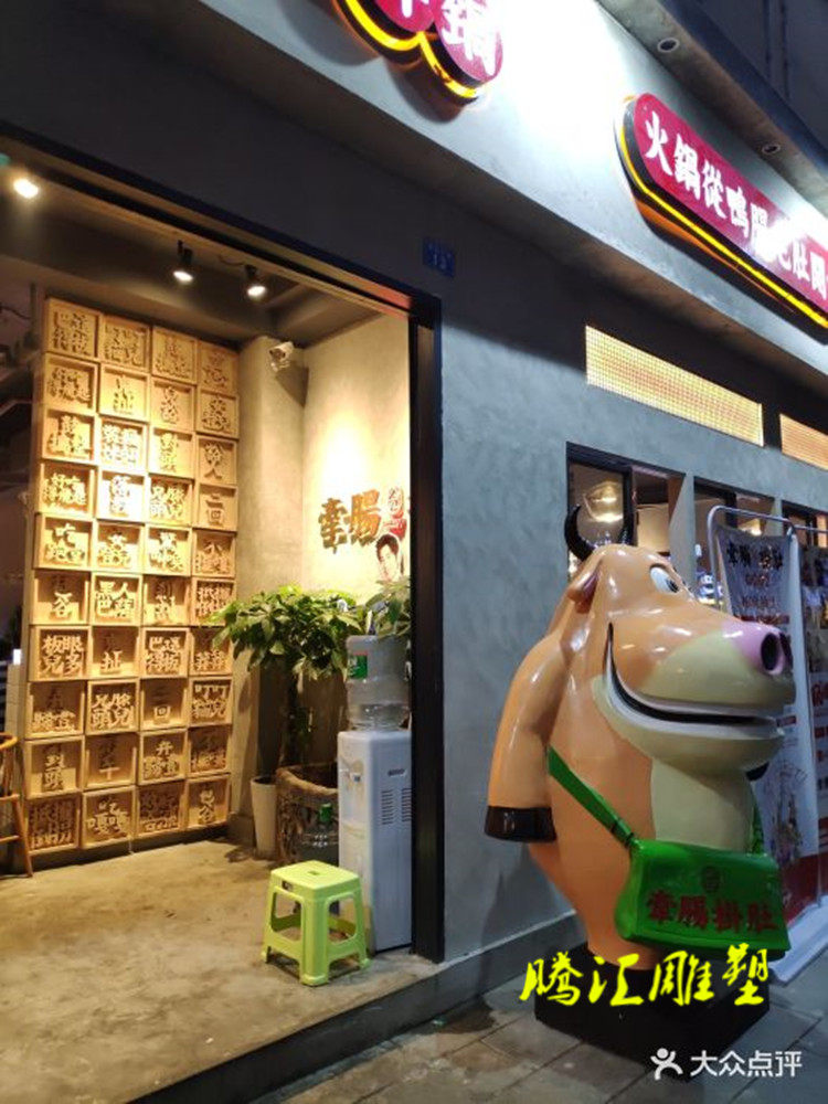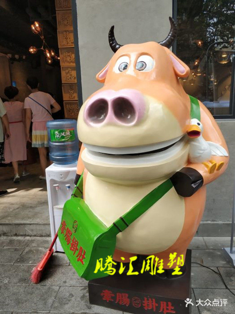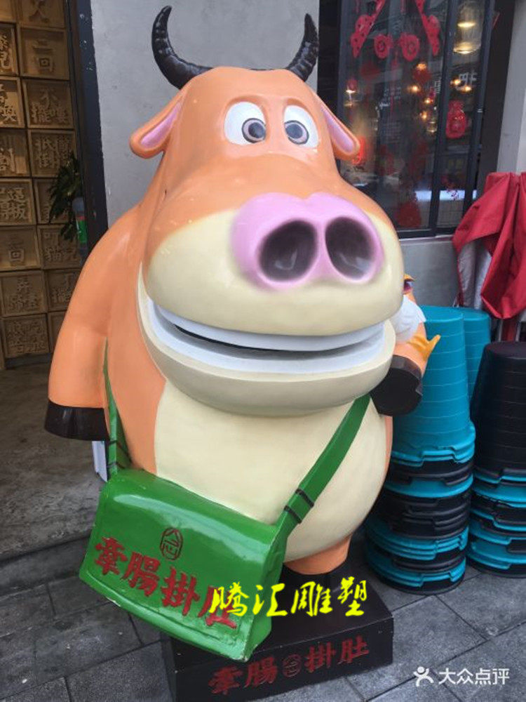 Hot-selling cartoon yellow cow sculpture glass steel yellow cow piglet calf with intestines hanging belly hot pot shop door welcome custom